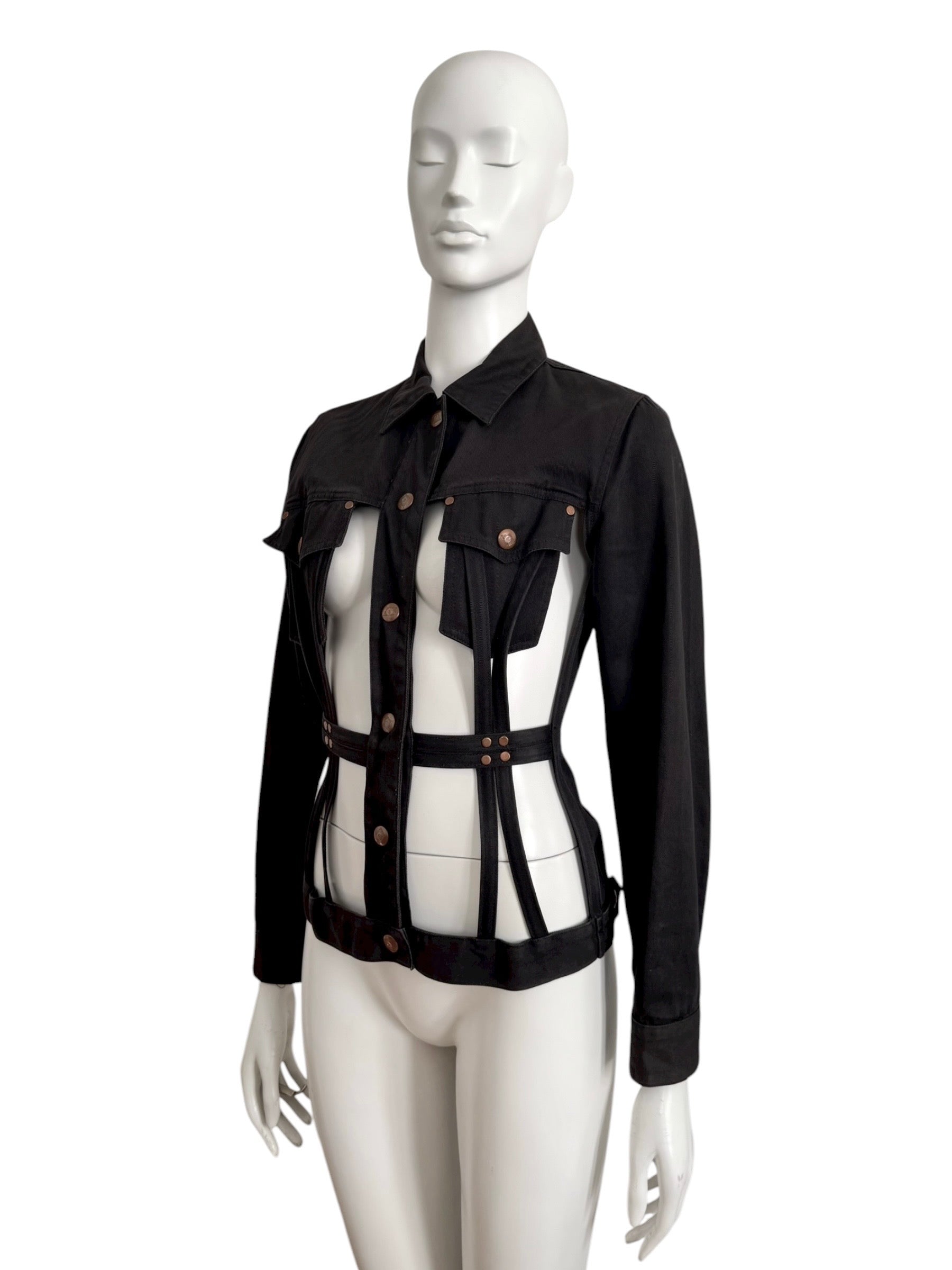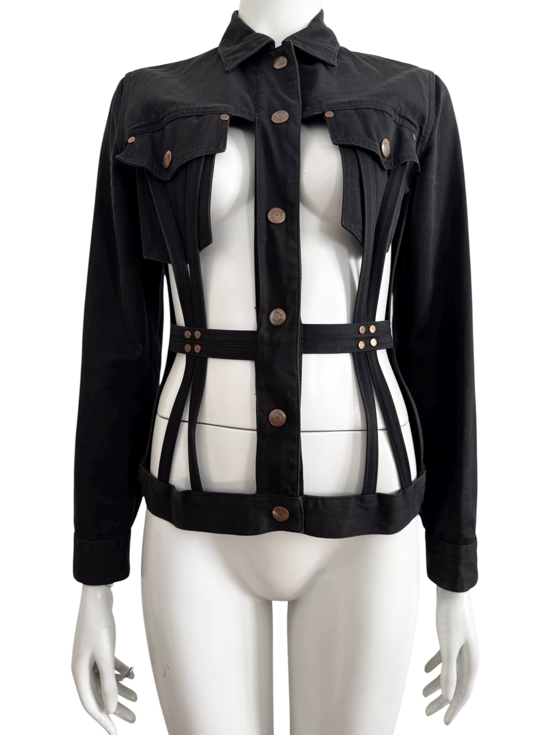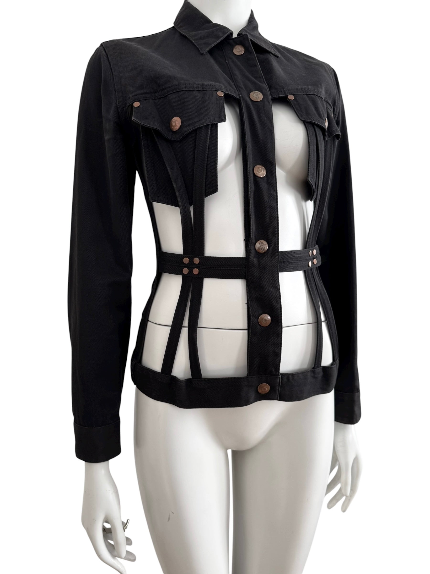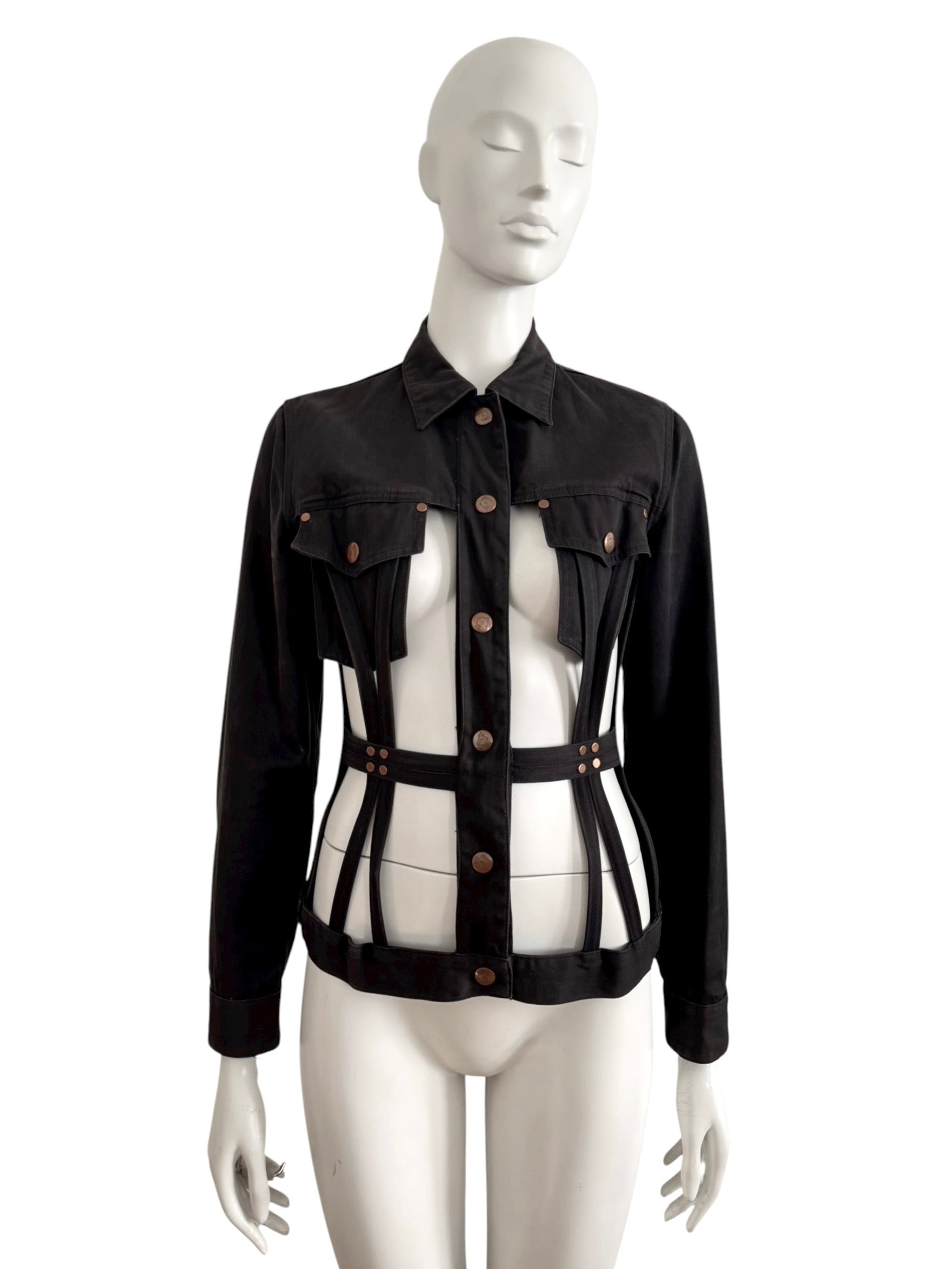 An absolute icon of the Gaultier wardrobe, this “cage” jacket from the Junior line for the spring-summer 1989 fashion show perfectly embodies the designer’s transgressive and visionary spirit.