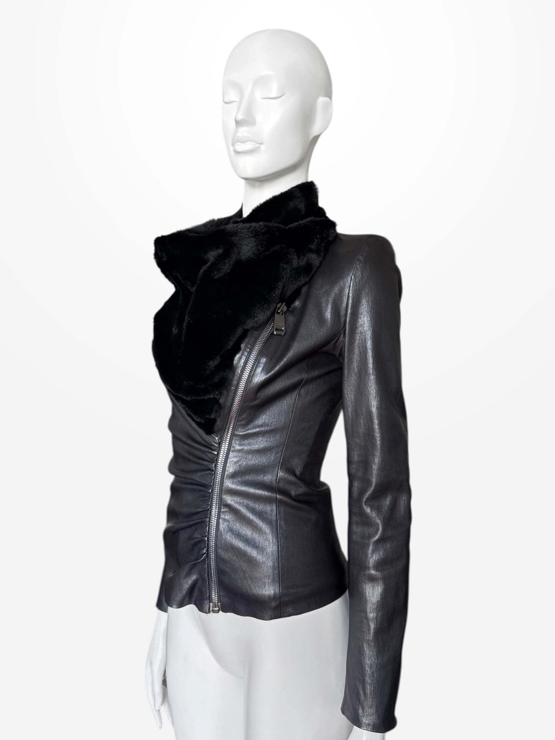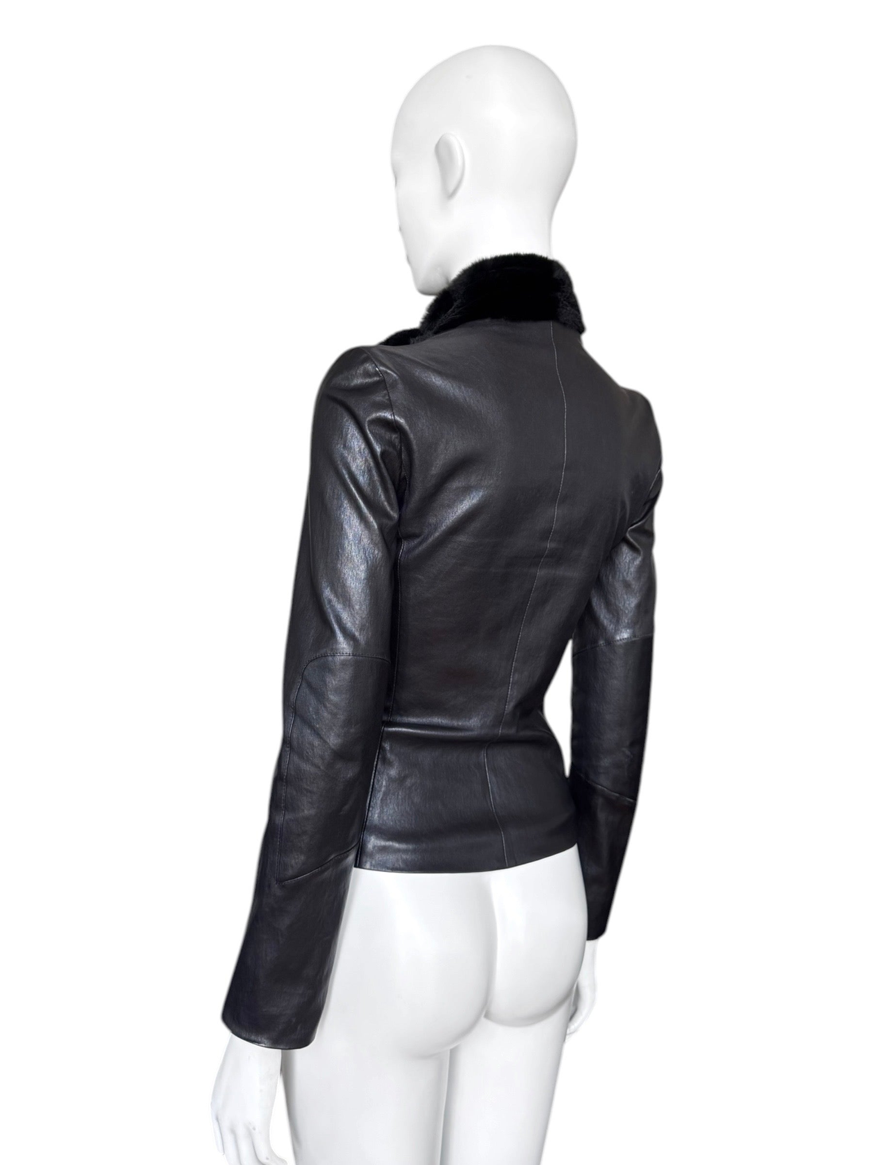 Veste Jitrois en cuir d’agneau souple, coupe ajustée et féminine.