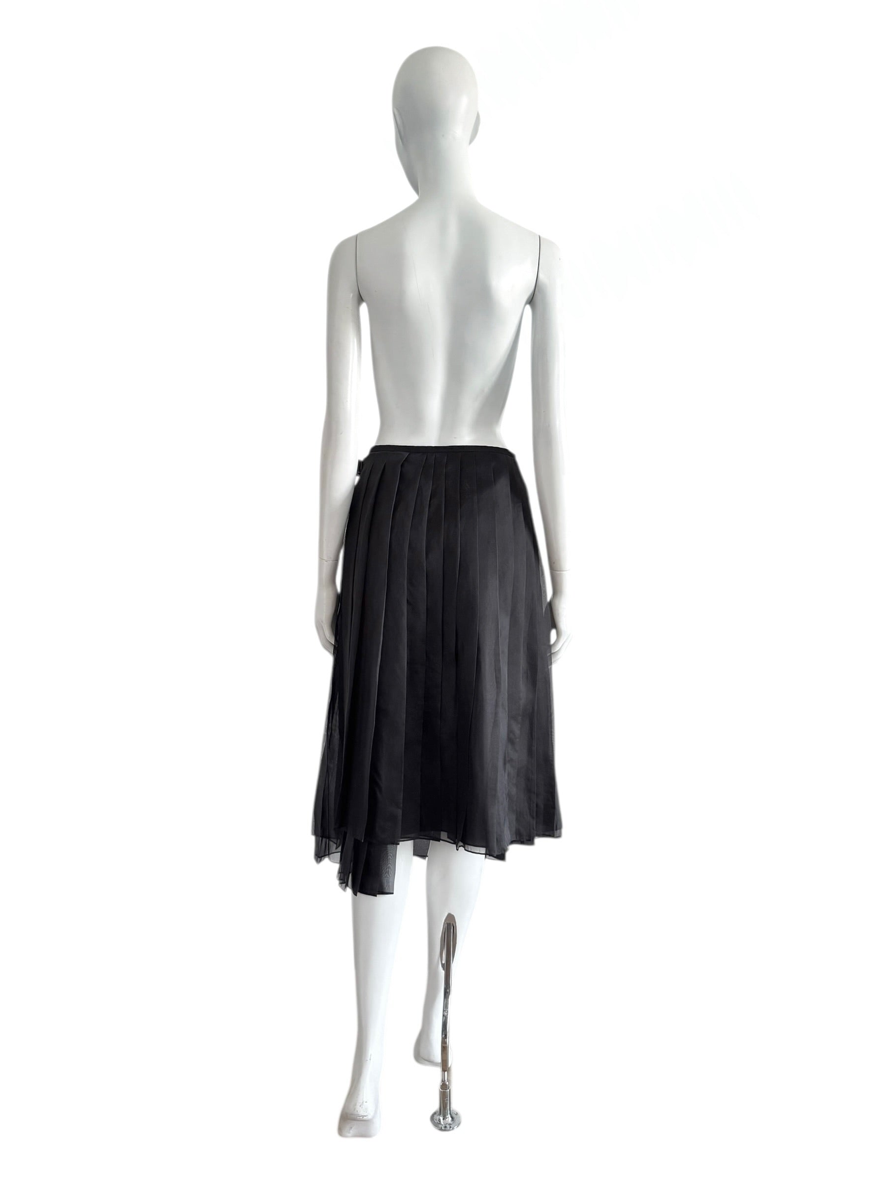 Plissée sur toute la longueur, avec un tombé asymétrique subtil.