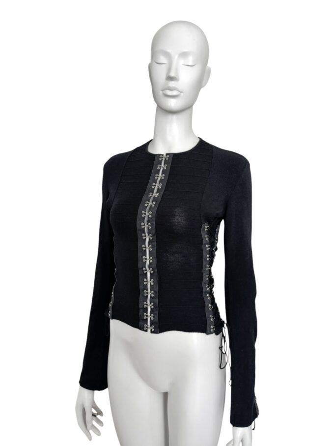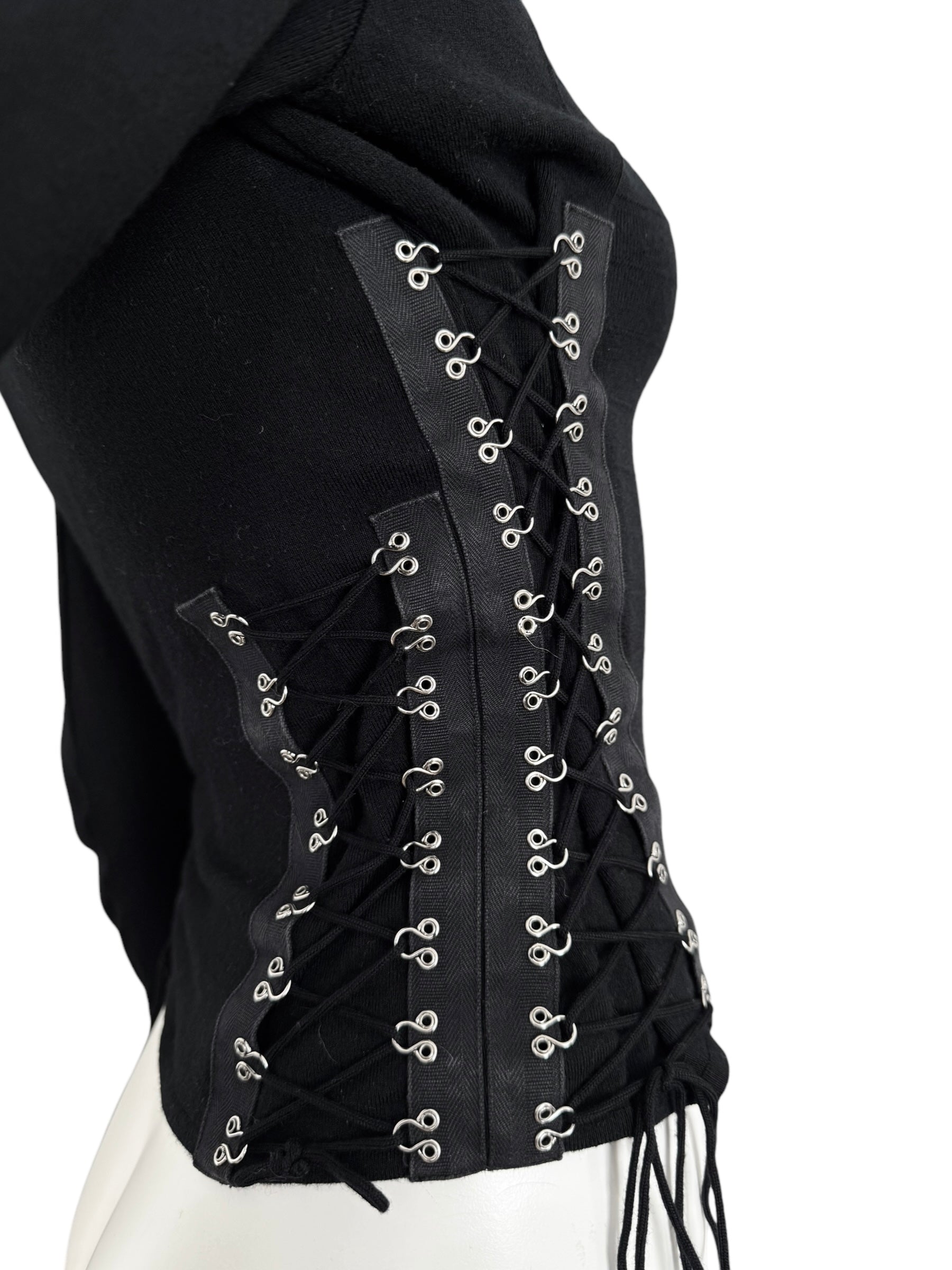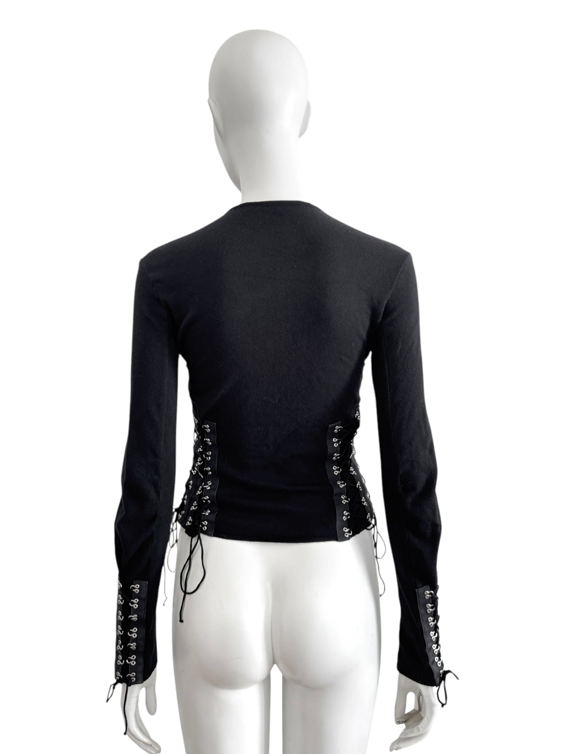 Pull noir en maille ajourée issu de la collection Printemps/Été 2003 de John Galliano.