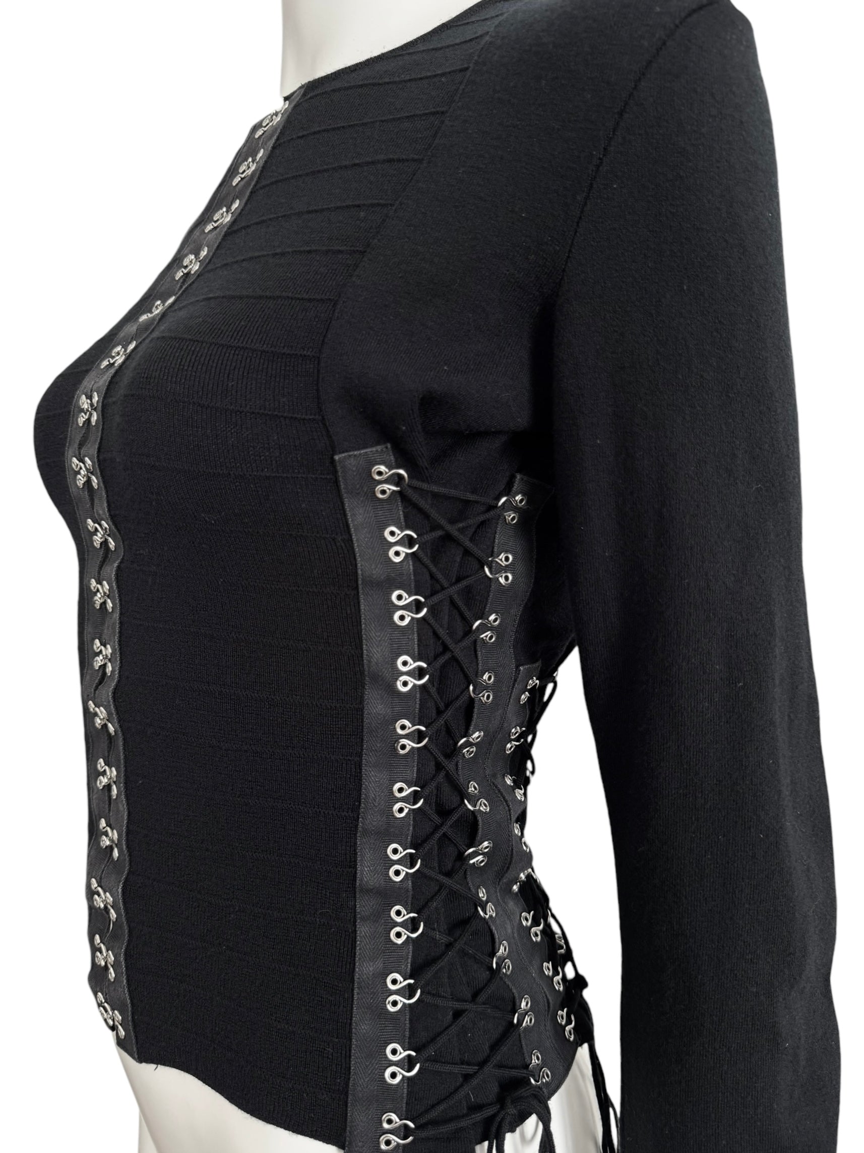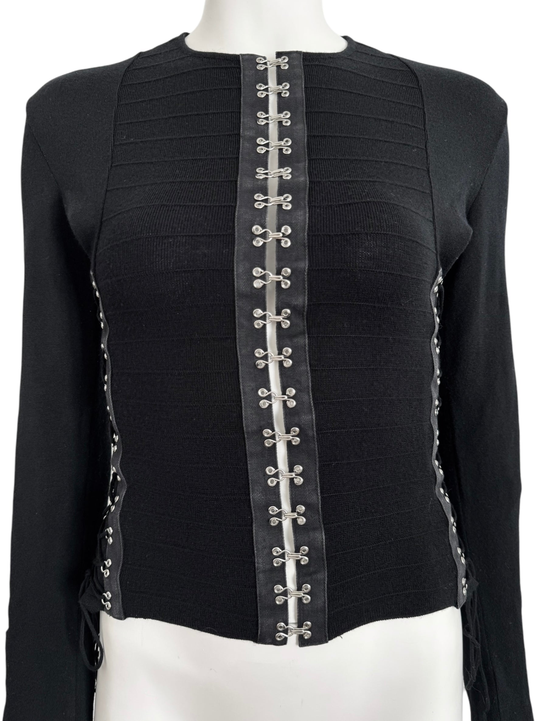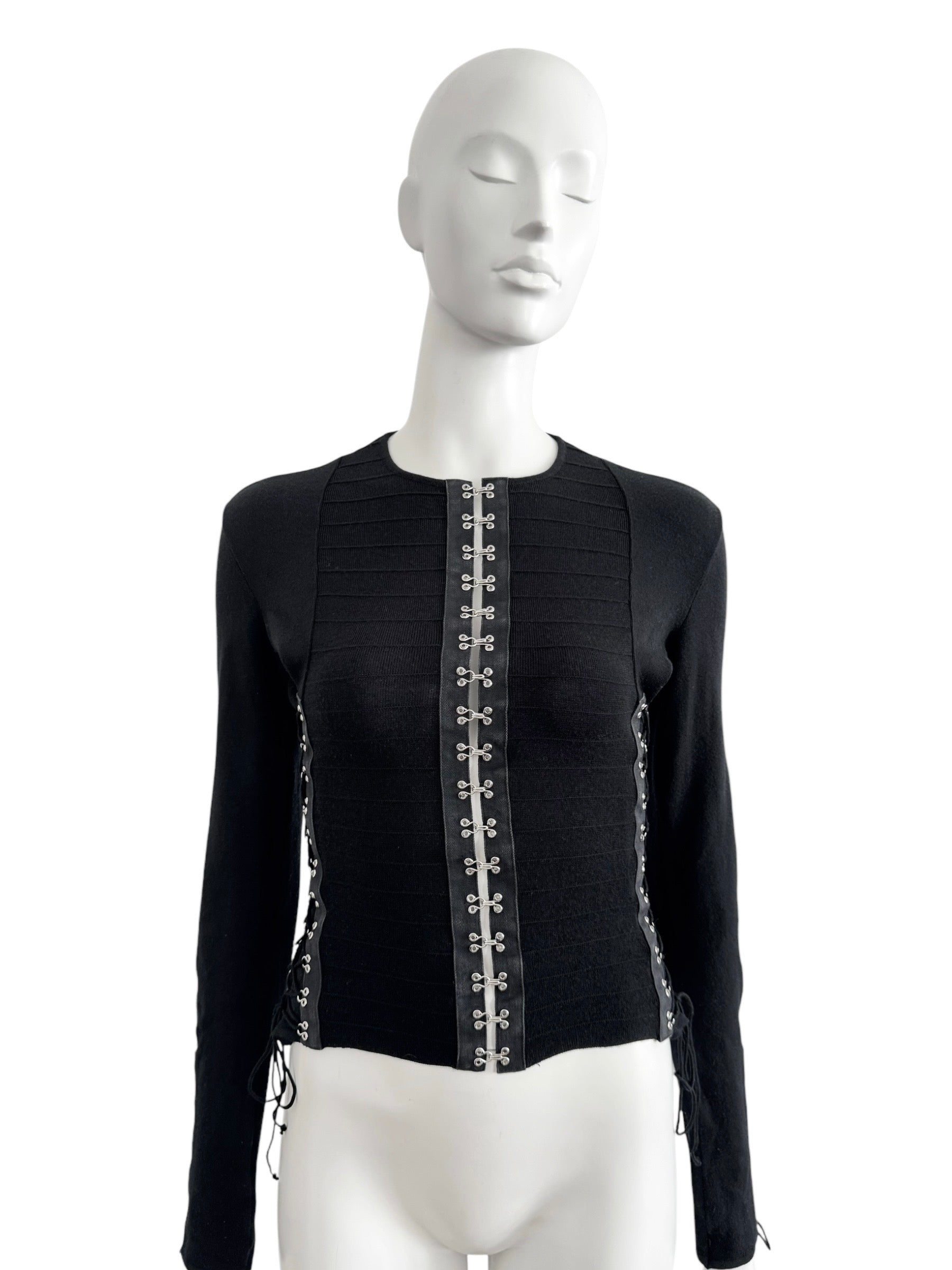 Pull noir en maille ajourée issu de la collection Printemps/Été 2003 de John Galliano.