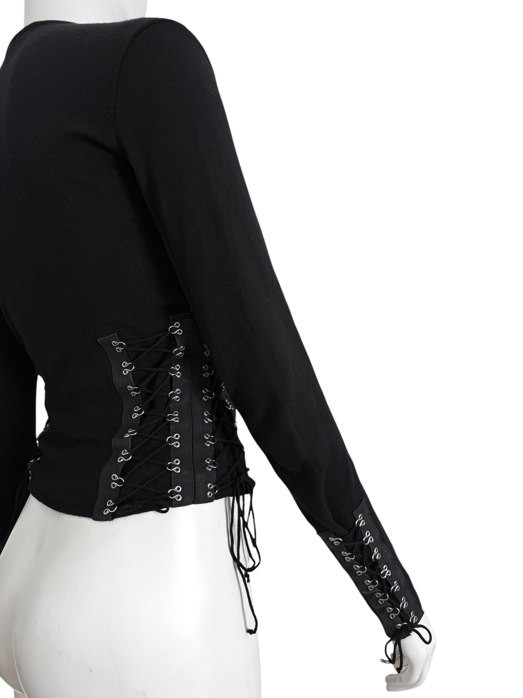 Une pièce rare et recherchée, emblématique du travail de Galliano sur la tension entre vêtement, peau et structure.